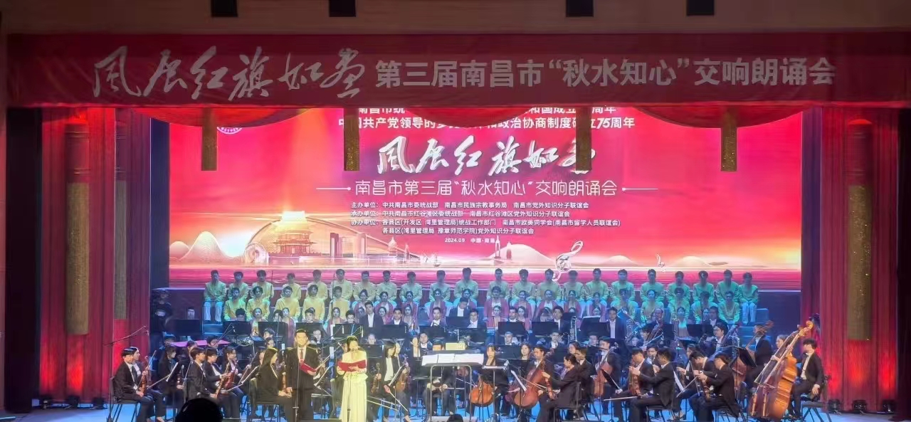 9月22日晚,南昌市统一战线庆祝中华人民共和国成立75周年、中国共产党领导的多党合作和政治协商制度确立75周年暨第三届南昌市“秋水知心”交响朗诵会举行。省政协副主席、省工商联主席、省知联会会长谢茹到场观演。市委常委、市委统战部部长饶绍清出席并致辞。市委常委、副市长安宝军,市政协副主席、市知联会会长万敏,市政协副主席、民革南昌市委会主委薛有旺,市政协副主席、九三学社南昌市委会主委魏宏平出席。