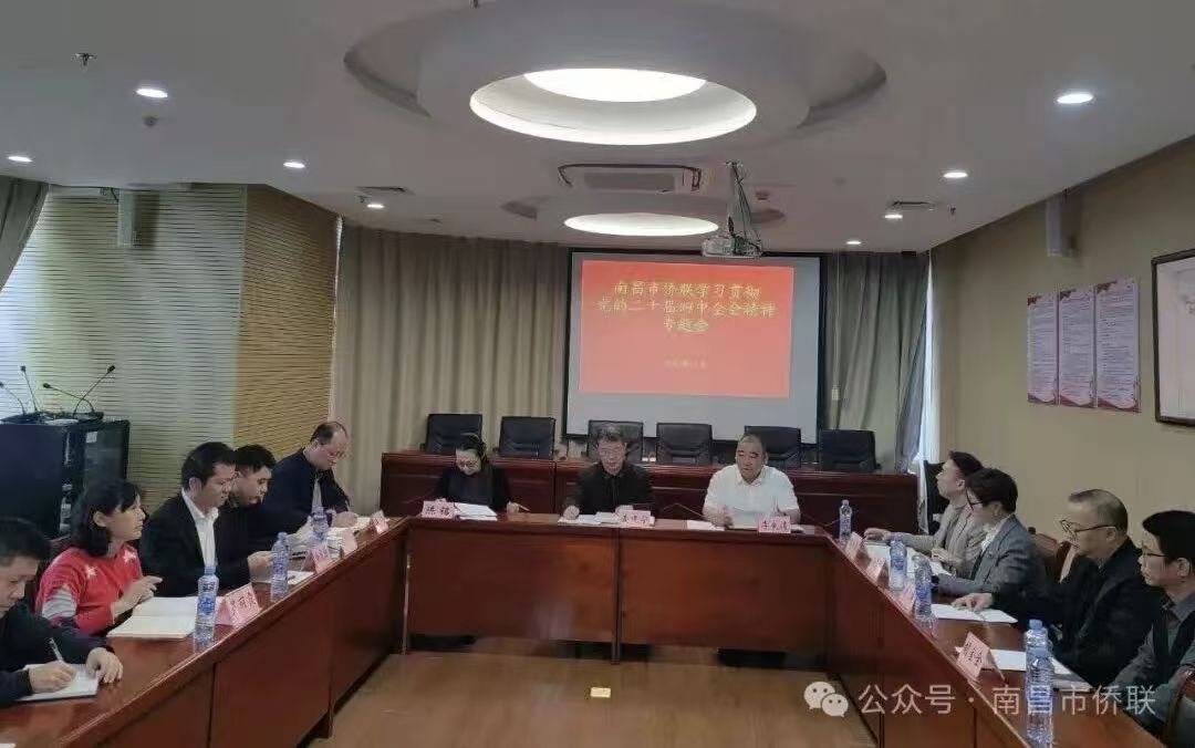 11月11日,南昌市侨联召开专题会议,深入学习贯彻党的二十届四中全会精神和全市学习贯彻党的二十届四中全会精神省委宣讲团报告会精神。市委统战部副部长、市侨联主席麦建宁出席会议并讲话。